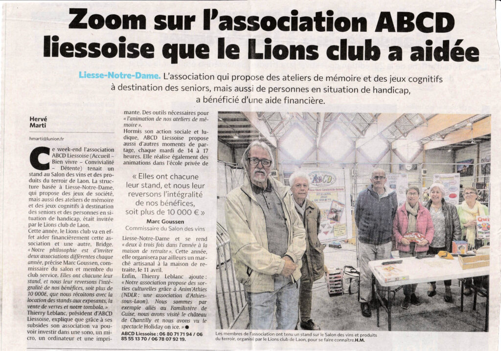 Article paru le lundi 16 mars dans le journal “l’Union” , consacré à la présentation de l’association abcdliessoise et de ses actions et ateliers,